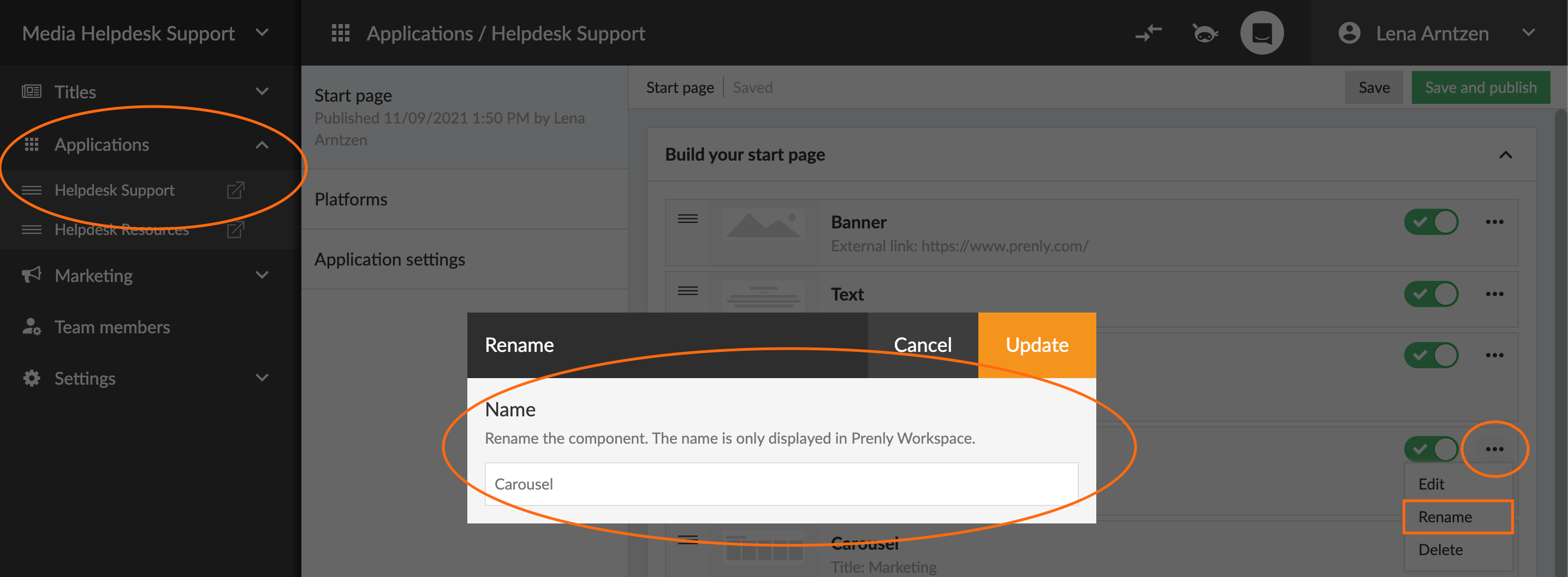 Sie können Ihren Komponenten in Prenly Workspace ganz einfach individuelle Namen geben.