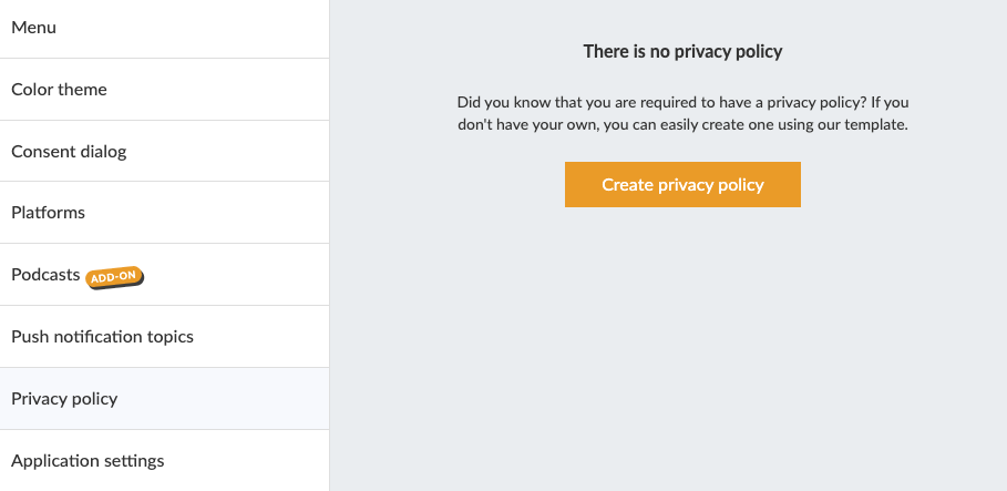 Wenn Sie noch keine Datenschutzrichtlinie haben, können Sie Ihre Seite mit den Datenschutzrichtlinien direkt in Prenly erstellen und hosten.