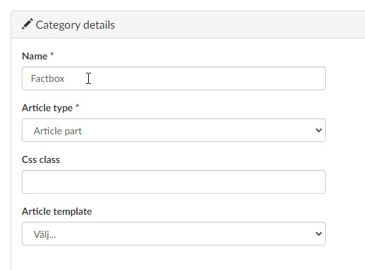 Geben Sie Ihrem Artikelteil einen Namen (z.B. "Factbox") und setzen Sie den Artikeltyp auf Artikelteil.