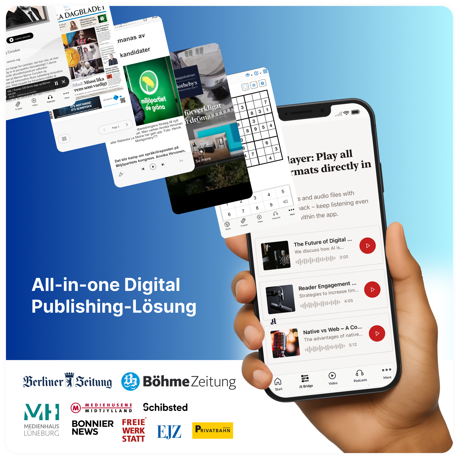 Prenly is an all-in-one publishing platform for media houses that want more than just an ePaper. Distribute e-newspapers, web news, podcasts, and interactive formats in branded apps – all from a single tool.