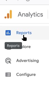 If you are not currently in the Reports view, please select "Reports" in the left-most side menu. Google Analytics will automatically minimise this sidebar so you might need to expand the sidebar to select "Reports".