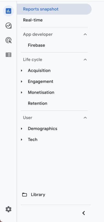 Select which Analytics report you would like to extract the available data. There are several categories and subcategories of reports. Below you can find an illustration of the general report setup.