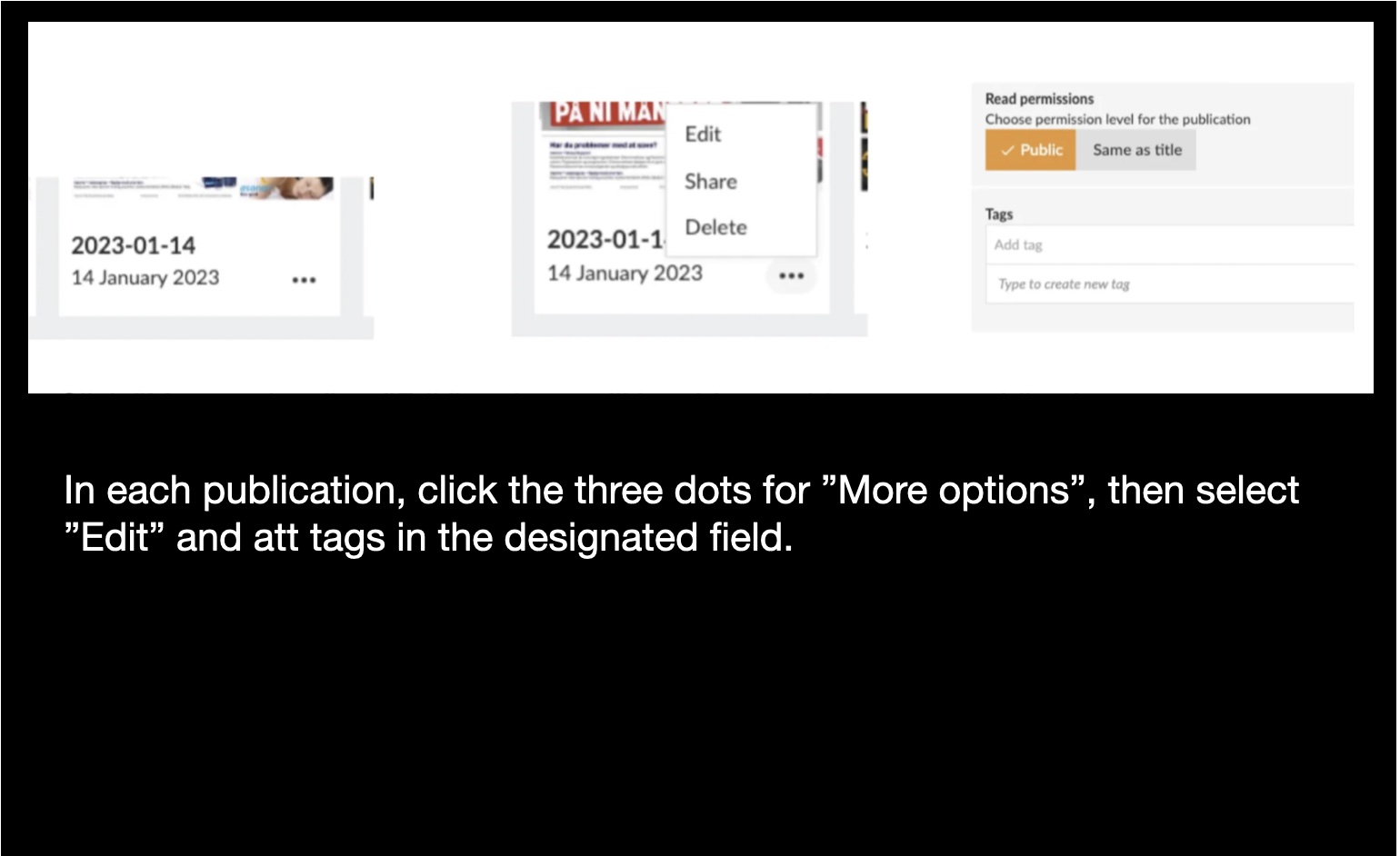 You can add a tag manually to any publication by opening the settings for each publication in Prenly Workspace and add a tag there.