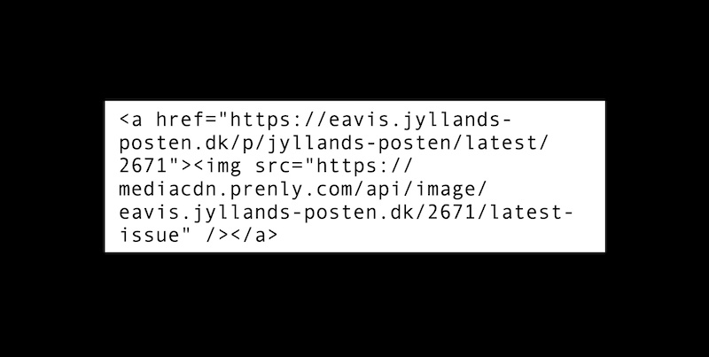 Example. If you want to use the code to display and link to the latest edition of Jyllands-Posten, use the following variables.