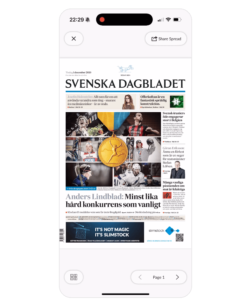 SvD valde Prenly som sin plattform för den digitala utgåvan – ett verktyg som gör det möjligt att publicera, distribuera och konsumera innehåll med både precision och känsla. Prenlys användarvänliga gränssnitt gav redaktionen möjlighet att behålla sin unika ton och layout i det digitala formatet.