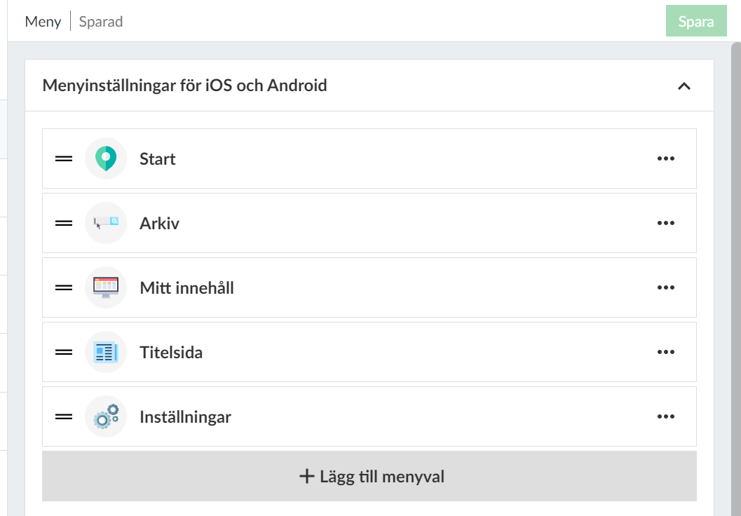 Menyinställningar för appen - Prenly
