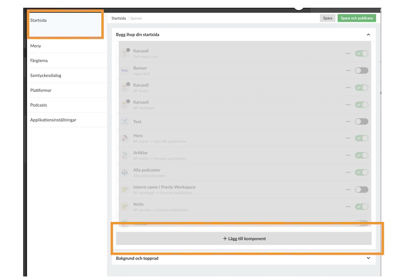 För att visa senast publicerade avsnitten kan du lägga till en ny komponent på Startsidan.