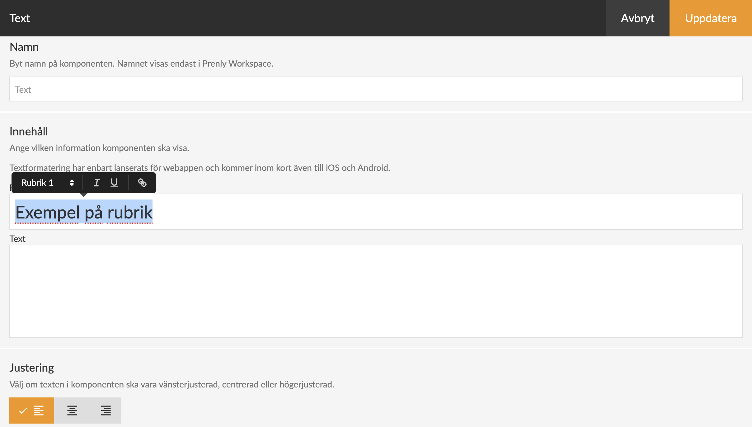 Det finns olika tillgänglighetskrav på exempelvis rubriker och brödtext, för att så många som möjligt ska kunna urskilja information. Du ändrar färgerna i Prenly Workspace.