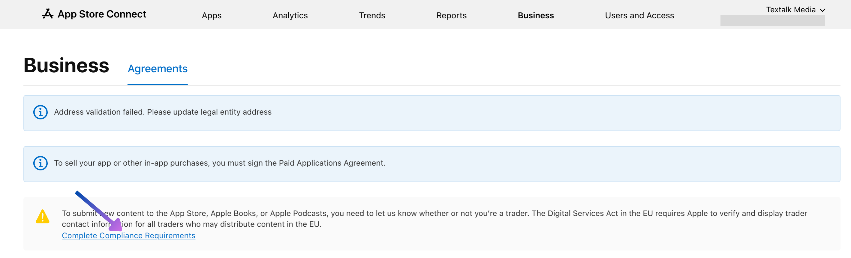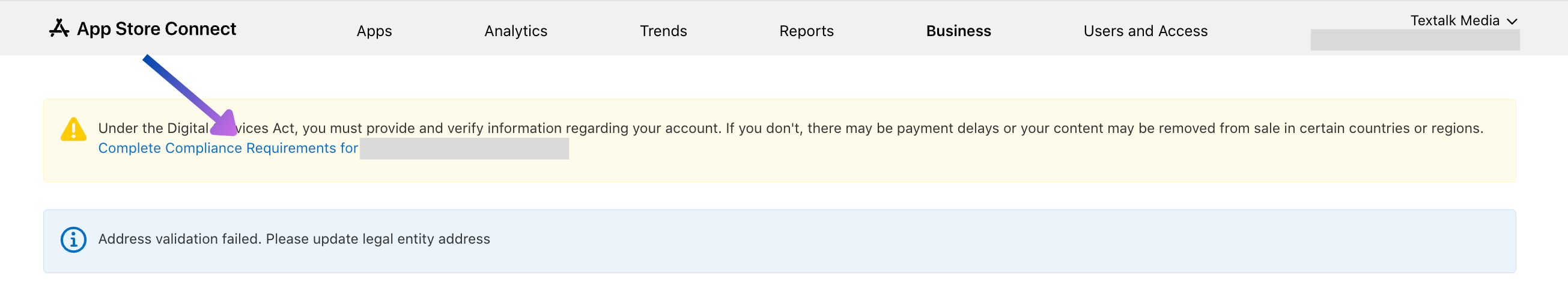 Alla innehavare av ett Apple-utvecklarkonto måste ange sin status som handlare enligt Digital Services Act.