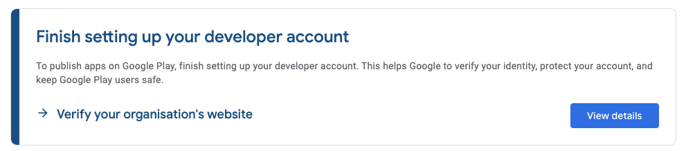 - I Google Play, i bannern som visar "Avsluta konfigurationen av ditt utvecklarkonto", klicka på "Visa detaljer"